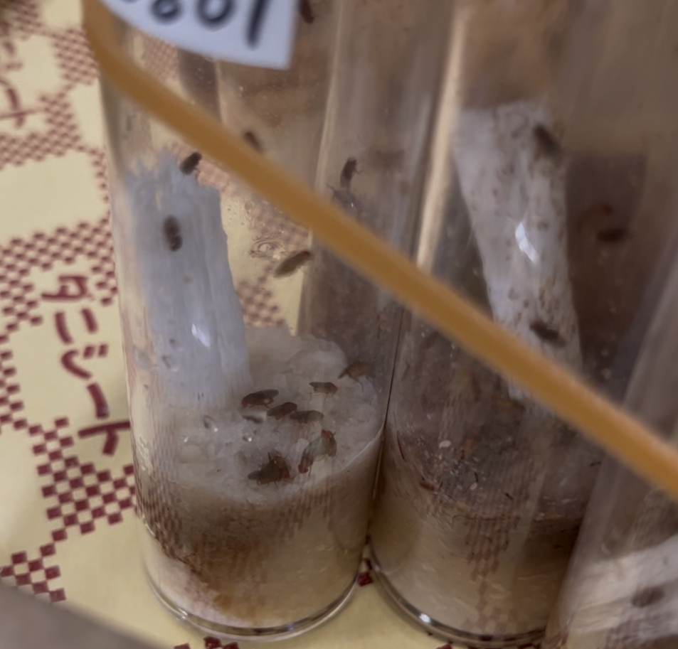 乾燥化は環境変動の影響の中でも見落とされてきましたが、乾燥は腐敗した肉や果実の質に大きく影響します。キイロショウジョウバエの幼虫は、集団で協力して採餌をすることで効率的に餌を捕食することが知られていますが、乾燥耐性との関連性はわかっていません。私は、集団内の採餌行動の多様性が乾燥環境での生存にどのような影響があるのかを検証します。