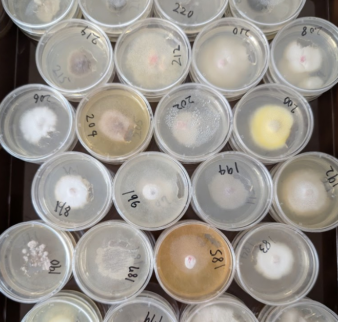 ヒト病原性真菌Aspergillus latusは、異なる二種間の交雑により生じた異質二倍体雑種として知られており、同じNidulantes節の分類群に属する他の種と誤同定されてきたことが分かっています。近年の研究では、A. latusが日本国内の臨床分離株(患者の痰や肺の洗浄液に由来)からも発見され、真菌病原体の隠蔽種としての重要性が指摘されています。そこで私は、日本産のNidulantes節と同定されている菌株について再同定を行うことでA. latusを探索し、続いて表現型解析により、その特徴を明らかにしたいと考えています。